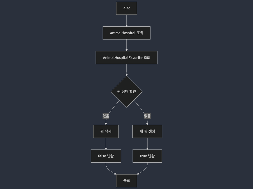 요청에 대상 AnimalHospital에 대해 조회 후 현재 유저와 매핑되는 Favorite가 있는지 조회합니다.