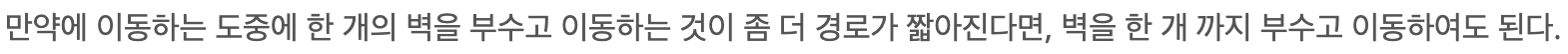 벽을 부시고 이동한 경우와, 벽을 안부시고 이동한 경우의 거리값이 동일 할 수 있다.