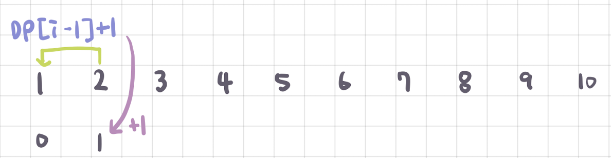 이와 같이 반복하면 arr[9] 까지 값이 저장되고, arr[10]의 경우에는 arr[9] + 1이 최소값이 된다.