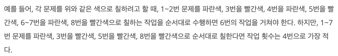 즉, 칠하는 일이 귀찮으니 최소 작업 횟수를 구하는 방법이다.풀이
