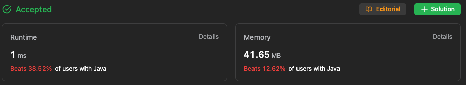 class Solution { public void merge(int[] nums1, int m, int[] nums2, int n) { for(int i = m ; i < m + n ; i++){ nums1[i] = nums2[i-m]; } Arrays.sort(nums1); } }제출 결과는 다음과 같았다.